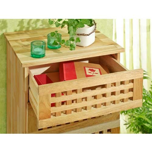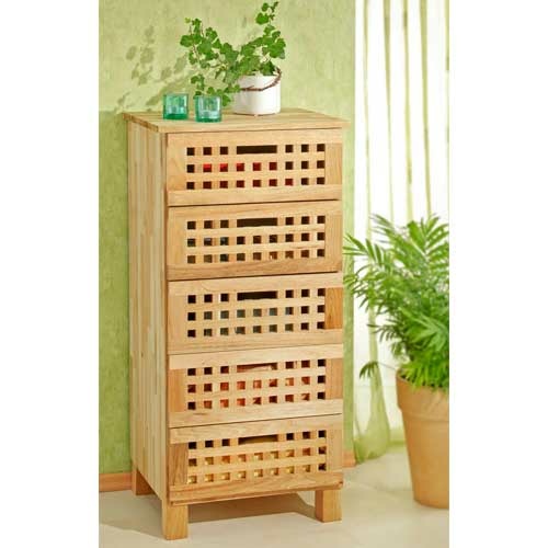Kvalitets kommode med fem skuffer i moderne optisk gitter design, der er fremstillet i robust valnøddetræ, der har fået klarlak. Solidt og lækkert design, der gør den til en fornøjelse at have i brug derhjemme. Forsynet med fem skuffer med gode opbevaringsmuligheder, der eksempelvis kan benyttes til opbevaring i stuen, til badeværelsestilbehør eller til kontoropbevaring m.m. Velegnet til brug i stue, entré, værelse, garderobe og badeværelse m.m. Kommoden passer ind de fleste steder i hjemmet med dens naturlige design.