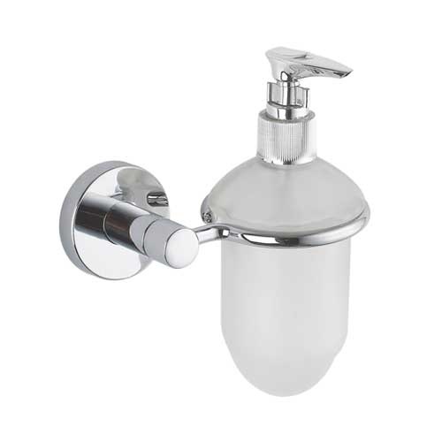 Højkvalitets sæbedispenser til væg i lækkert og stilrent design fra Atlanta serien, der er produceret hos finske Pisla. Fremstillet i zamac, der er en metallegering, mens selve beholderen er fremstillet i frosted glas. Forsynet med kvalitets pumpe, der let doserer sæben i en passende mængde. Beregnet til vægmontering på badeværelset. Skruer og murplugs til vægmontering medfølger. Passer sammen med resten af den stilrene Atlanta serie.
