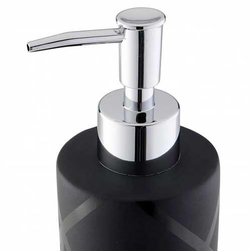 Elegant Nero sæbedispenser, der er fremstillet i massivt stentøj med mat sort lakering og kommer fra tyske Axentia. Forsynet med forkromet plastpumpe, der nemt og præcist doserer sæben i en passende mængde. Her får du en moderne badeværelsesserie, hvor du kan tilkøbe en hel kollektion af matchene tilbehør til badeværelset.