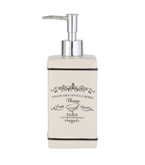 Dekorativ sæbedispenser fremstillet i hvid keramik med sort vintage tryk fra Axentia. Flot udført i nostalgisk design. Sæbebeholderen er udstyret med kvalitets pumpe, der let doserer sæben fra en dråbe op til en god slat, alt efter hvad du må have behov for.