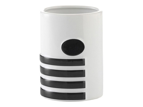 Dekorativt tandkrus, der er fremstillet i lysegrå keramik med sort mønster. Flot udført i moderne design. Dekorativt og brugbart blikfang til badeværelset.
