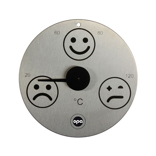 Kvalitets saunatermometer til måling af temperatur i din sauna. Fremstillet i rustfrit stål og forsynet med sjov smiley indikator. Produceret i saunaens hjemland hos kvalitetsbevidste Pisla i Finland.
