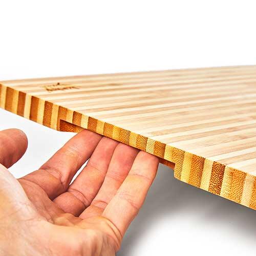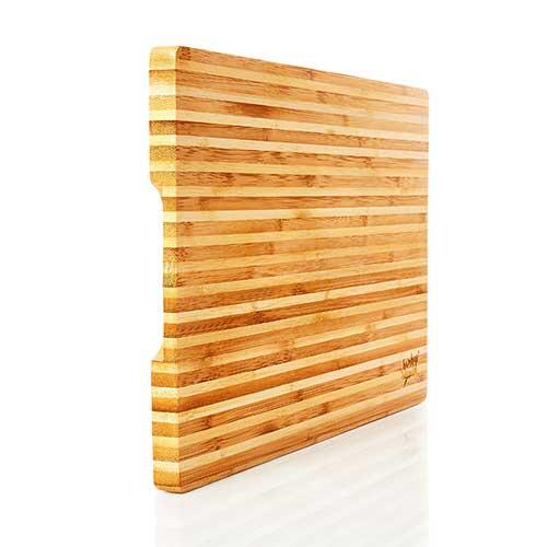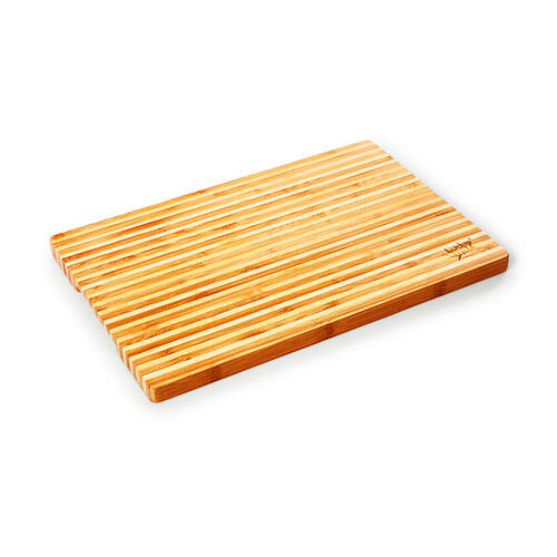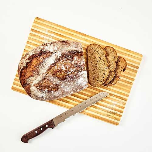 Lækkert to-farvet brødskærebræt, der er udført i bæredygtigt bambustræ fra tyske Bambuswald. Bambustræ er yderst velegnet som skærebræt, da det er et utroligt holdbart materiale, skånsomt mod knivens skarphed og nemt at rengøre. Skærebrættet har forbløffende lang holdbarhed, hvis det blot rengøres med vand og lader det tørre grundigt. Også velegnet til servering og opskæring af brød direkte på bordet.