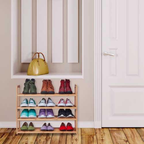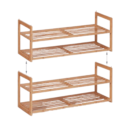 Giv dit indgangsparti et strejf af naturen med denne skoreol i miljøvenligt og bæredygtigt bambus. Skoreolen er fremstillet i 100% bambus med plads til 6 par større sko. Robust skoreol i indbydende design med mulighed for at stable flere skoreoler, anbefalet op til 3 stk. Skoreolen er nem at samle og leveres med materialer og forborede huller til stabling. Kan belastes med op til 6 kg. pr. hylde. Afstanden mellem hylderne er 13 cm.