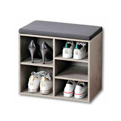 Robust skoreol i stilfuldt og moderne design med en flytbar hylde. Skoreolen er fremstillet i FSC-certificerede spånplader med laminat og grå hynde, der sidder fast med velcro. Der er plads til ca. 5 par sko. Praktisk måde at få styr på skoene i entréen, hvor du også har en polstret siddeplads når der skal skiftes sko. Skoreolen er nem at samle og leveres med alt hvad du skal bruge. Skruehuller afsluttes med miljøvenlige mærkater.