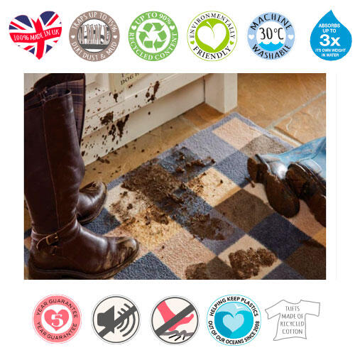 En topkvalitets Hug Rug smudsmåtte er intet mindre end fantastisk! Her får du en Eco Genics smudsmåtte, der er fremstillet i 100% genbrugsmaterialer og en dørmåtte, der fanger op til 95% støv, snavs og mudder. Smudsmåtten er 100% genanvendelig, kan maskinvaskes ved 30° og har tilmed en bæredygtig livscyklus.