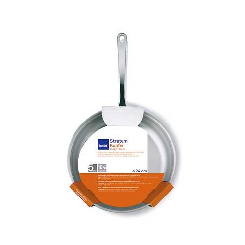 Denne attraktive og langtidsholdbare Stratum stegepande fra tyske Kela består af 3 lag. Yderste lag består af kobber, midterste lag består af aluminium og det inderste lag består af 18/10 rustfrit stål. Fordelen ved kobber er, at panden hurtigt optager varmen fra varmekilden og bibeholder varmen i højere grad, takket være de 3 lag. Derfor er det både en energibesparende og tidsbesparende løsning.