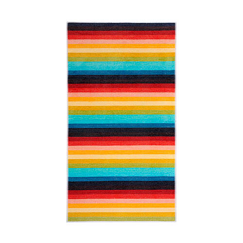 Strandhåndklædet har en super god suge- og tørreevne, og har en god størrelse til brug på stranden, i haven m.m. Tåler vask ved 60 grader og tørretumbling.