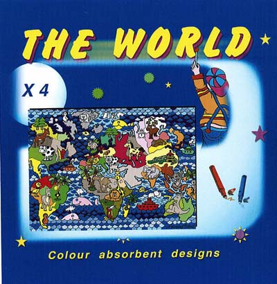 4 forskellige velour motiver i høj kvalitet incl. farvevejledning og tusser. Sættet består af 4 forsk. motiver der sættes sammen til et stort verdenskort, på hver 24,5 x 31,5 cm. samt 12 kvalitets tusser.