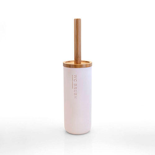 Attraktiv Nature toiletbørste, der er fremstillet i en blanding af polyresin og bambus. Produceret hos svenske Duschy og forsynet med teksten "WC brush bathroom accessories".