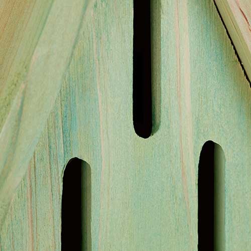 Insekthotellet måler (H x B x D) 38 x 35 x 9,5 cm. Vejer 2,25 kg.