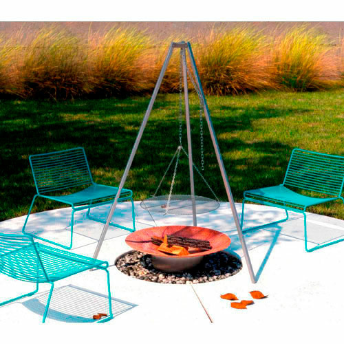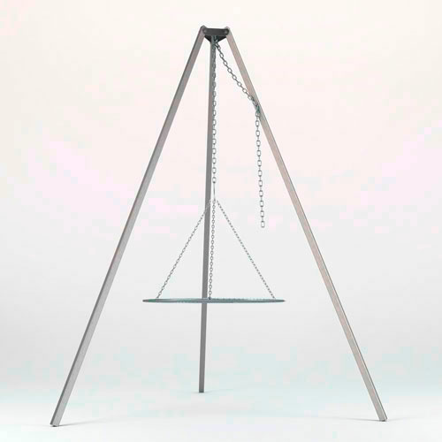 Højkvalitets grillrist med kædeophæng til bålsted på tre ben, der er udført i kraftigt rustfrit stål for ekstra lang levetid. Kædeophænget gør det nemt at justere højden på grillristen, så du hurtigt kan indstille det til den rette højde. Egner sig til grill ved 4-6 personer. Her får du mulighed for at lave spændende mad i haven og på hyggelige udflugter med familien. Grillristen er produceret på et europæisk designer værksted og er stort set lavet i hånden, ligesom det lever op til de allerhøjeste kvalitets standarder.