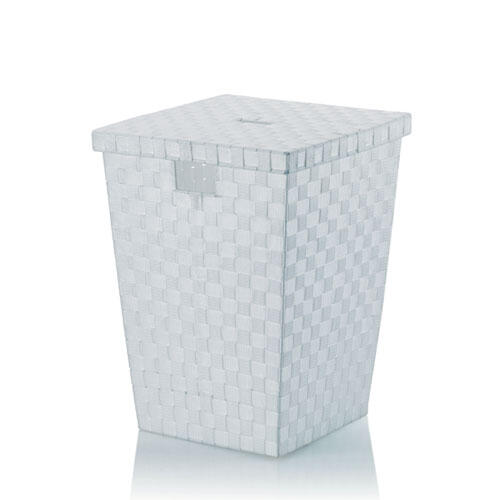 Smart og praktisk vasketøjskurv i stilrent design fra tyske Kela. Fremstillet i hvidt, flettet PP-plast og forsynet med bærehåndtag og låg. Kurven kan ligeledes benyttes til opbevaring af legetøj og meget andet.