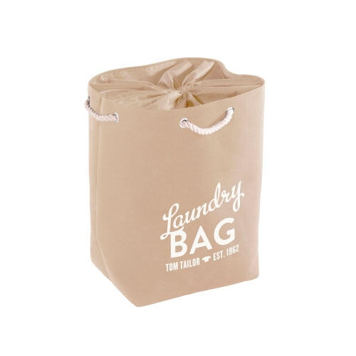 Kvalitets Tom Tailor vasketøjspose fra tyske Kela i beige. Fremstillet i 100% polyester og forsynet med dekorativt "Laundry bag" tekstmotiv. Forsynet med smart magnetluk. Opbevar dit vasketøj på stilfuld vis med denne moderne vasketøjspose og undgå bjerge af vasketøj i boligen. Når vasketøjsposen ikke er i brug, kan den hurtigt foldes sammen og opbevares i et skab el. lign. indtil den skal i brug igen.