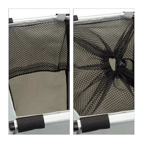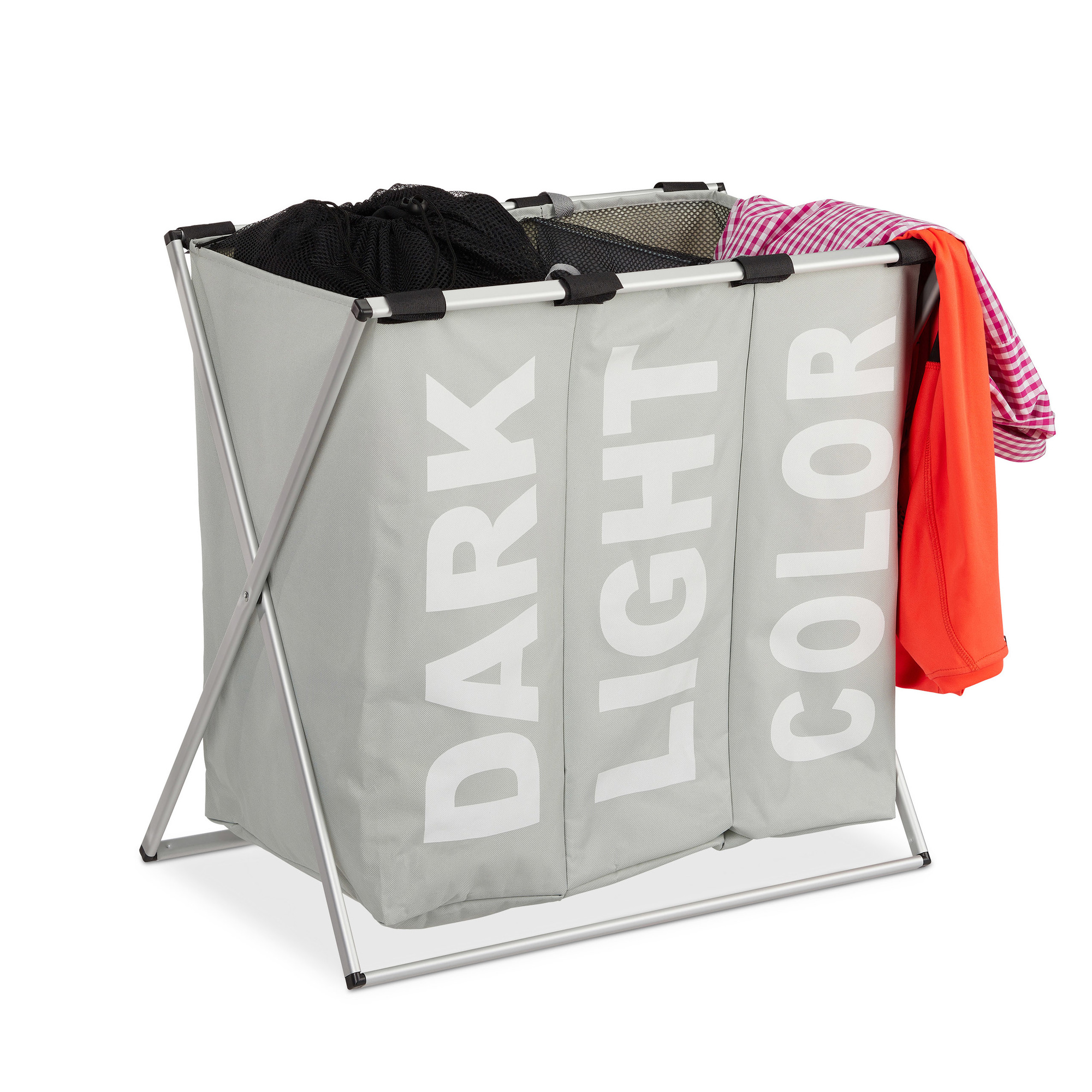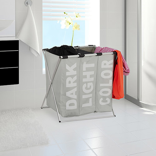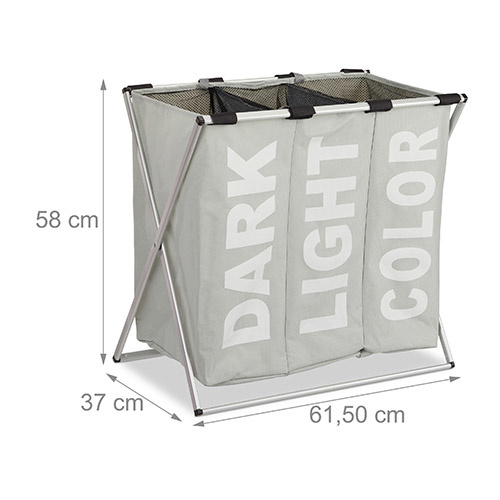 Smart og rummelig vasketøjskurv, der er flot udført med aluramme og Oxford polyester, samt stor kapacitet på hele 90 l. Ideel til nem og hurtig sortering af vasketøj, da den er ruminddelt i "Dark", "Light" og "Color. Vasketøjskurven kan klappes sammen når den ikke er i brug, så den fylder mindre. Poserne er fastgjort med velcro og er derfor nemme at afmontere og påmontere før og efter vask.