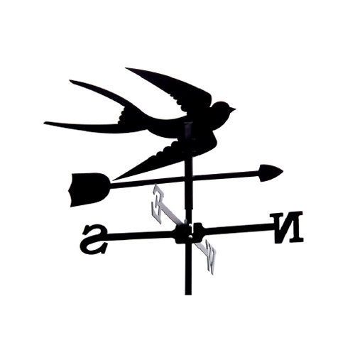 Vejrhane med svale i virkelig god kvalitet til opsætning på tagryg, altan eller i haven m.m. Fremstillet i 1,2 mm. stålplade med præcis laserskæring. Kraftig vejrbestandig overfladebehandling i sort pulverlak. Vejrhanen har flere monteringsmuligheder og derfor er det muligt at montere den på taget, men også at bruge den som havedekoration.