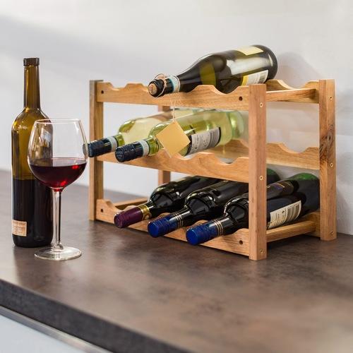 Praktisk vinreol med plads til 12 flasker, fremstillet af holdbart træ i klassisk stil. Velegnet til opbevaring af flasker, hvor pladsen er lidt trang.