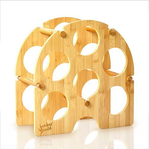 Praktisk vinreol, der er fremstillet i bæredygtigt og miljøvenligt bambustræ med plads til 6 standard flasker. Denne visuelt tiltalende vinholder har ingen skarpe kanter og lever op til de højeste kvalitetsstandarder.